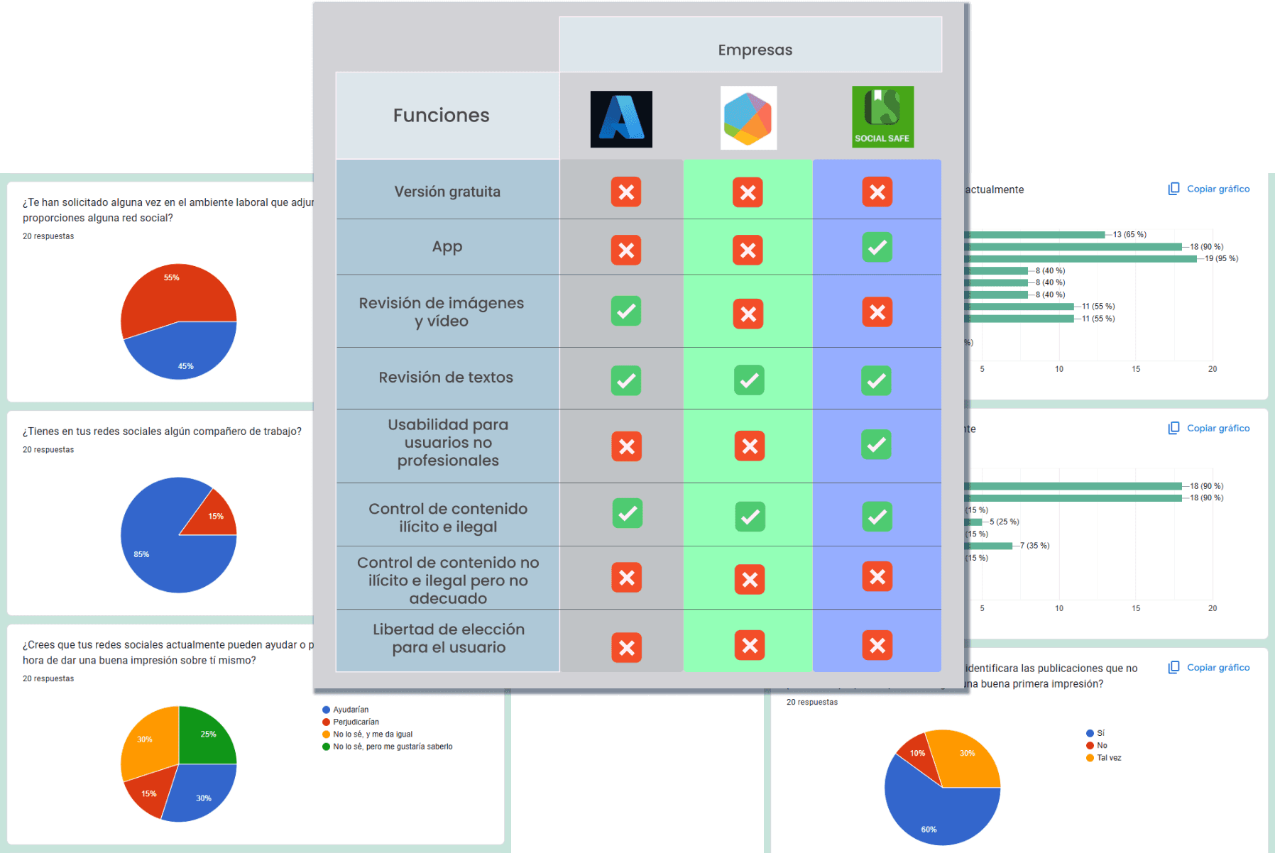 Insights recogidos de Benchmark: Las apps similares estaban dirigidas a usuarios profesionales, carecían de versiones gratuitas y se enfocaban en detectar contenido ilícito, pero no necesariamente inadecuado.